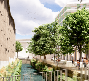 Le vert protège, le bleu apaise. Au cœur de Tivoli Sud, les zones végétalisées entre les bâtiments, le grand parc proposant arbres fruitiers et jardins potagers, invitent au bien-être. Puis, si proche du lac, une partie de la rivière La Serrière revoit la lumière du jour. Dans le Vallon, l’eau redevient ainsi une source de fraîcheur et de nature.